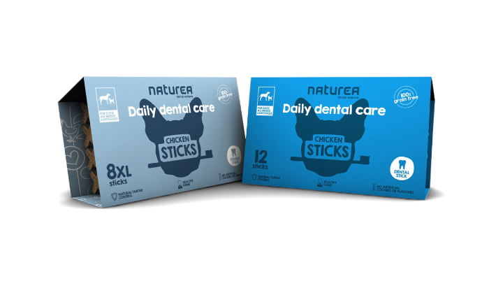 Naast het voeden van je hond, geven we ook prioriteit aan hun mondgezondheid. Om de opbouw van tandsteen en gaatjes tegen te gaan, hebben we een lijn dental sticks ontwikkeld, zonder chemicaliën of reinigingsmiddelen. De sticks zijn gemaakt van 88% verse vis en vlees om ook een gezonde spijsvertering te bevorderen. Net zoals we voor onze eigen mondhygiëne zorgen, geloven wij dat een dagelijkse mondverzorging essentieel is voor het welzijn van je beste vriend.