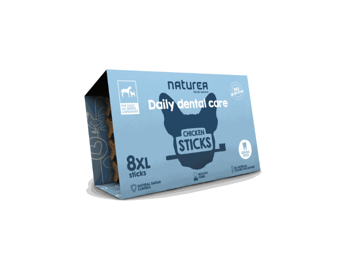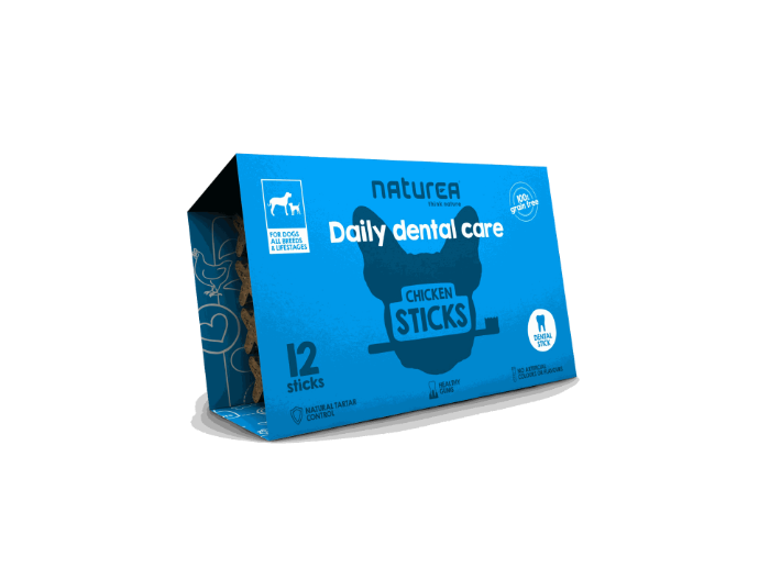 De smakelijke Daily Dental Care Dental Sticks zijn onweerstaanbaar lekker en rijk aan hoogwaardige eiwitten. helpt tandplak te verminderen en tandvleesontstekingen tegen te gaan door de mechanische werking van het kauwen. Zijn geschikt voor dagelijks gebruik en voor honden van alle rassen en levensfases.